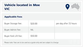 BID NOW ONLINE AUCTION Catalogue & images are a guide only. Please inspect images online to make your own determinations. Payment due within 24hrs. Storage fees may apply after 48hrs. Late Payment feeof $121 will be added if not paid on time. Forklift fees mayapply. Vehicles may not include keys/books. All vehicles sold unregistered unless advised. No guarantee on mechanicalcondition.