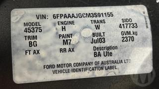 2003 Ford Falcon BA XR6 2D Utility