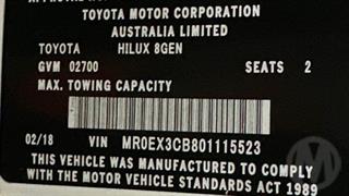 2018 Toyota Hilux GUN/TGN 120-130 TGN121R Workmate 2D Cab Chassis