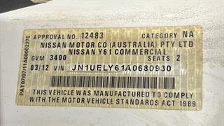 2012 Nissan Patrol GU DX 2D Cab Chassis