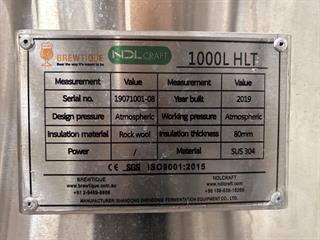 2019 Brewtique 1000L HLT Fermentation Vessel