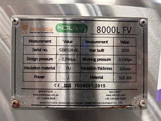2019 Brewtique 8000L FV Fermentation Vessel