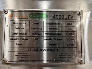 2019 Brewtique 4000L FV Fermentation Vessel