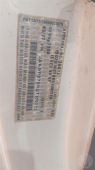 2017 Isuzu NPS75-155 Tray GCM 11,000kg