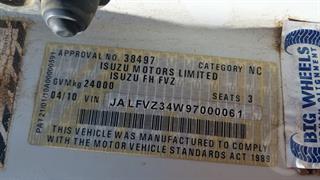 2010 Isuzu FVY 1400 Long Water Cart GCM 36,000kg