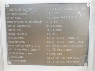 2003 Holmwood Highgate TS36-ABT-NSD 44,000L Tanker (Fuel) ATM 36,000kg