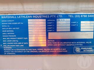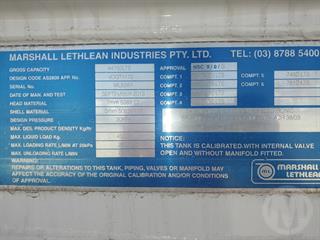 2013 Marshall Lethlean 44,770L Tanker (Fuel) ATM 45,000kg