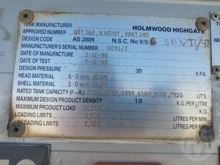 1990 Holmwood Highgate TS36-SBT-NSS 43,350L Tanker (Fuel) ATM 36,000kg