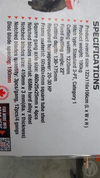 TMG Industrial TMG-TDH04 Disc Harrow Earth Moving Accessories