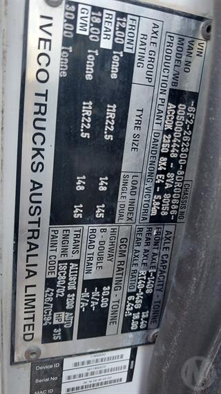 2013 Iveco Acco 2350 Cab Chassis GVM 30,000kg